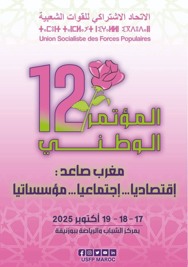 ينعقد المؤتمر الوطني الثاني عشر أيام 17 – 18 – 19 أكتوبر 2025 ببوزنيقة