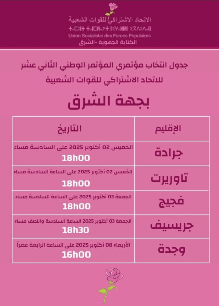 جدول انتخاب المؤتمرين بجهة الشرق 6 أكتوبر 2025 Facebook WhatsApp Twitter LinkedIn Print تعليقات الزوار ( 0 ) مستجدات الحزب 29 أكتوبر 2025 المهدي بنبركة: 29 أكتوبر 1965 – 29 أكتوبر 2025 29 أكتوبر 2025 المهدي المزواري لـ «تيل كيل»: قيادة الاتحاديين كانت «إجماعاً وضرورة» وتجديد الحزب بدأ من القواعد! 28 أكتوبر 2025 التقرير السياسي للمؤتمر 12: المكاشفة والمسؤولية بلاغات وبيانات 20 أكتوبر 2025 تفاصيل البيان العام الصادر عن المؤتمر الوطني الثاني عشر.. 26 سبتمبر 2025 بلاغ الكتابة الإقليمية للحزب بسلا 23 سبتمبر 2025 بلاغ المكتب الوطني للشبيبة الاتحادية مواضيع ذات صلة المهدي بنبركة: 29 أكتوبر 1965 – 29 أكتوبر 2025 المهدي المزواري لـ «تيل كيل»: قيادة الاتحاديين كانت «إجماعاً وضرورة» وتجديد الحزب بدأ من القواعد! التقرير السياسي للمؤتمر 12: المكاشفة والمسؤولية الاتحاد الاشتراكي… حين يتحول النجاح إلى مصدر إزعاج