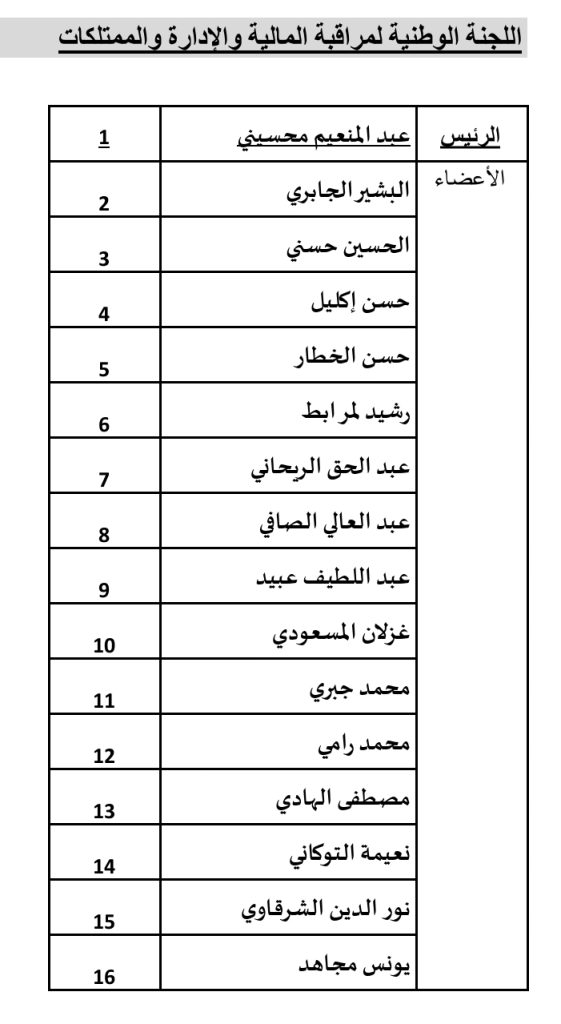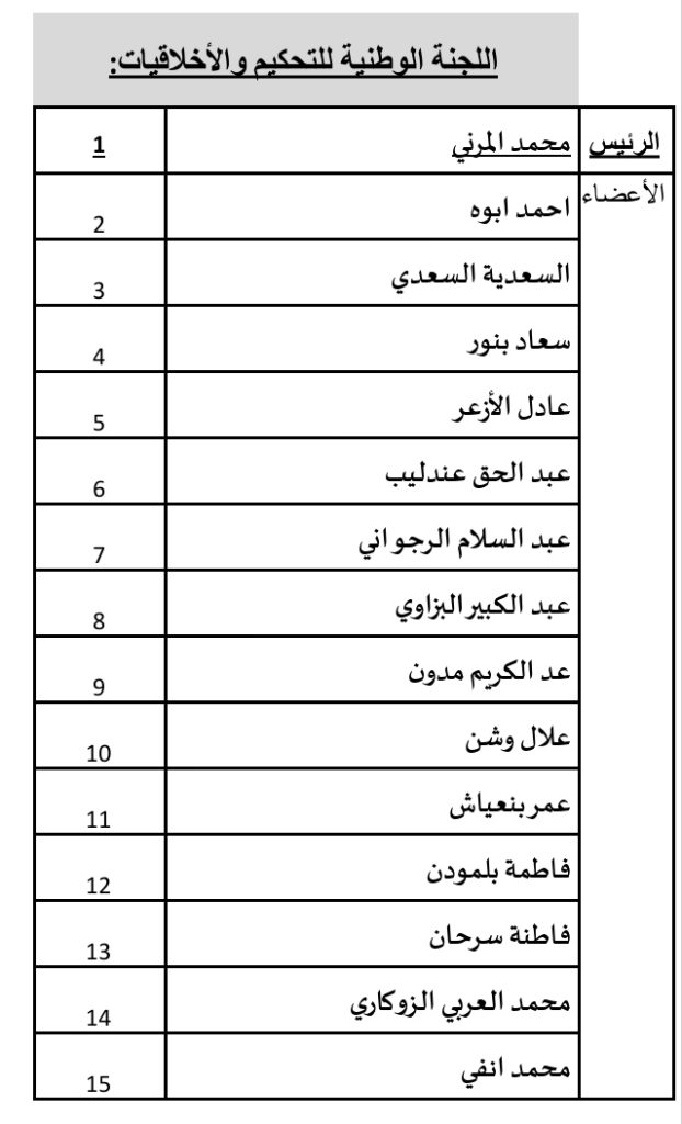 وأما بخصوص هيئتي الحكامة؛ اللجنة الوطنية للتحكيم واللجنة الوطنية لمراقبة المالية والإدارة والممتلكات ورؤساء ومقرري اللجان الوطنية الدائمة؛ فإنني حرصت على اقتراح إخوة وأخوات يمكنهم بتنوع اختصاصاتهم وتجاربهم القيام بالمهام الموكولة إليهم وفقا لمقتضيات القانون باستقلالية ونزاهة ضمير.