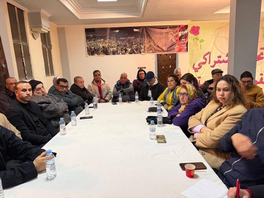جلسة تنظيمية للكتابة الإقليمية بالحي المحمدي عين السبع 3 مارس 2026 Facebook WhatsApp Twitter LinkedIn Print صور الجلسة التنظيمية لفريق عمل المكتب السياسي بجهة الدار البيضاء سطات مع الكتابة الإقليمية للحزب بالحي المحمدي عين السبع . تعليقات الزوار ( 0 ) مستجدات الحزب 3 مارس 2026 جلسة تنظيمية للكتابة الإقليمية بالحي المحمدي عين السبع 3 مارس 2026 اجتماع المكتب الوطني للشبيبة الاتحادية برئاسة الكاتب الاول 2 مارس 2026 بلاغ السكرتارية الوطنية لقطاع الصيادلة الاتحاديين بلاغات وبيانات 2 مارس 2026 بلاغ السكرتارية الوطنية لقطاع الصيادلة الاتحاديين 25 فبراير 2026 بلاغ المكتب السياسي للحزب لاجتماع يوم الاثنين 23 فبراير 2026 3 فبراير 2026 بلاغ الكتابة الجهوية للحزب بجهة الدار البيضاء سطات مواضيع ذات صلة اجتماع المكتب الوطني للشبيبة الاتحادية برئاسة الكاتب الاول بلاغ السكرتارية الوطنية لقطاع الصيادلة الاتحاديين وفد من المكتب السياسي للحزب يزور ضريح محمد الخامس الفريق الاشتراكي المعارضة الاتحادية يسائل وزير الفلاحة حول ارتفاع أسعار الخضر والفواكه خلال رمضان